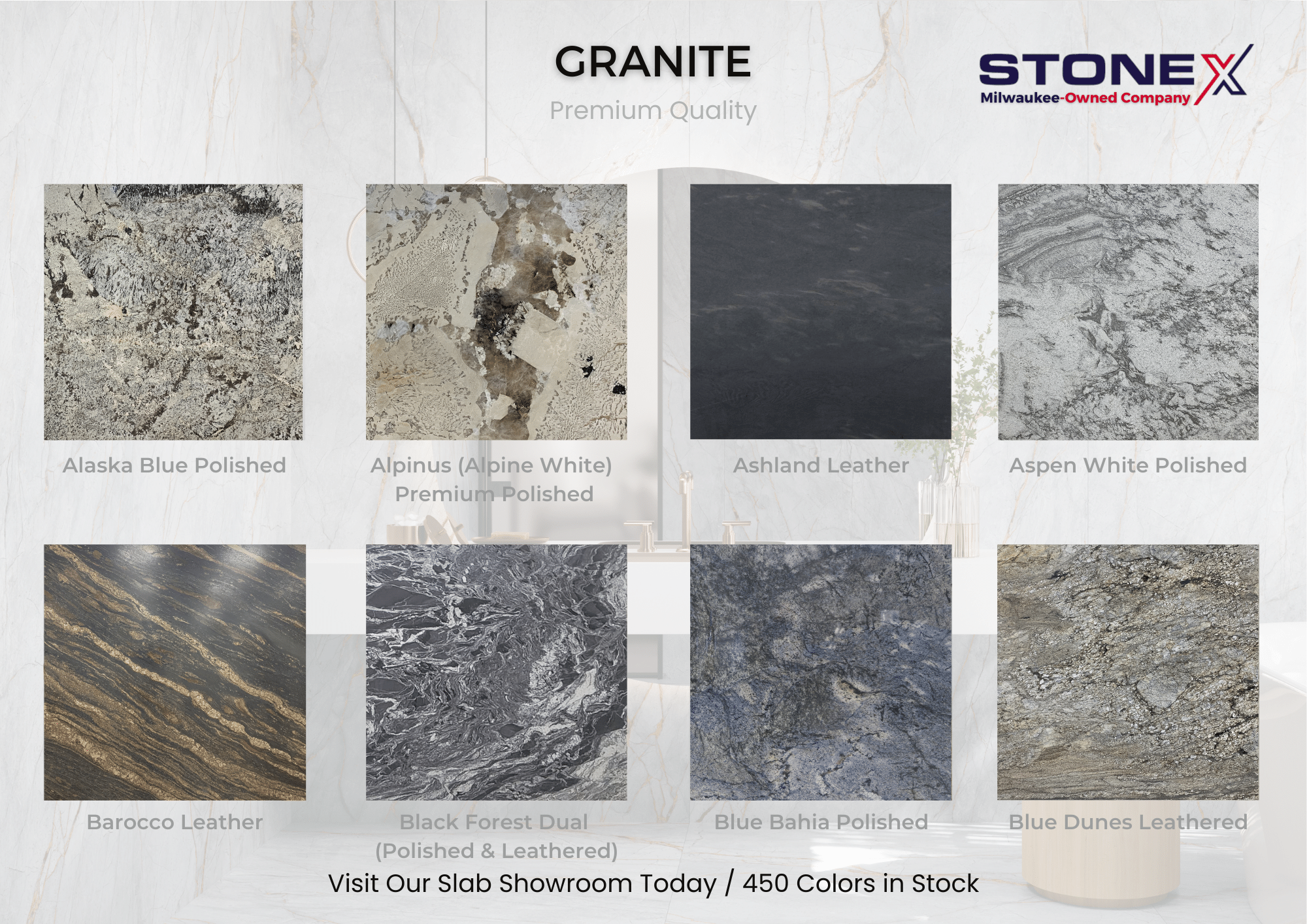 StoneX USA is a supplier of natural & engineered stone that offers over 450 color patterns of premium surface granite, marble, quartz, and quartzite selections for your kitchen, bath, fireplace and outdoor kitchen countertops.