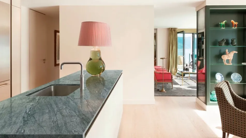 The watery-green colour that gives it its name is its hallmark; the subtle changes in tone, in a palette that encompasses from luminous white to deep-green veining, give it a unique personality. Aquabella shines in splashbacks and countertops, in spaces where water is the dominant force: its resilience makes a magnificent pairing with its aesthetic.