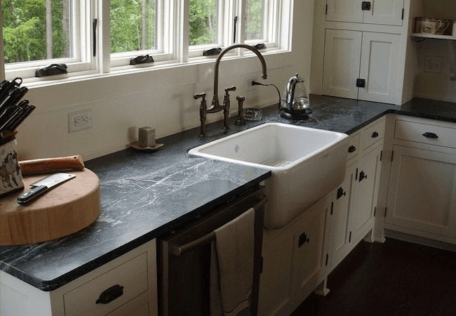Black Soapstone countertops are elegant, durable, and subtle in its beauty.