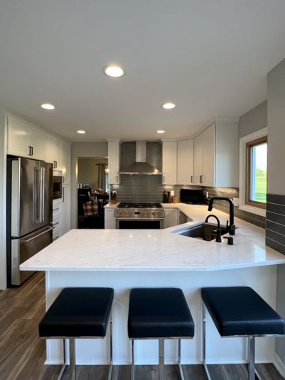 Captivating Appearance: Calacatta Ocean Quartz features a captivating aesthetic with a mesmerizing white background and veining that resembles the graceful movement of ocean waves.