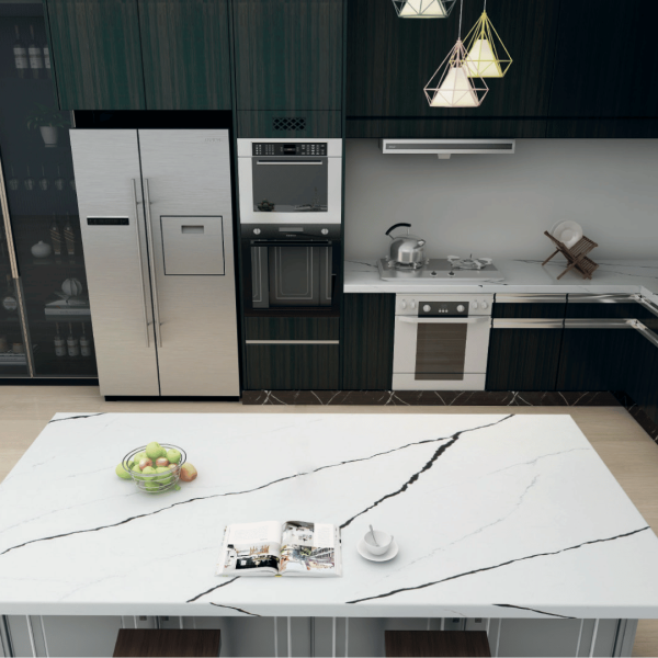 Low Maintenance: Unlike natural stone, quartz is non-porous, making it resistant to stains, scratches, and bacteria. This feature ensures that Calacatta Rainforest Black quartz stone is a low-maintenance option, ideal for busy kitchens and high-traffic areas.