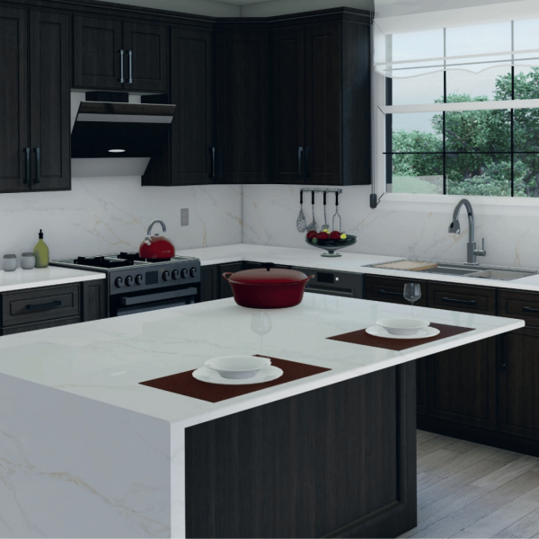 Low Maintenance: Unlike natural stone, quartz is non-porous, making it resistant to stains, scratches, and bacteria. This feature ensures that Calacatta Rocky Gold quartz stone is a low-maintenance option, ideal for busy kitchens and high-traffic areas.
