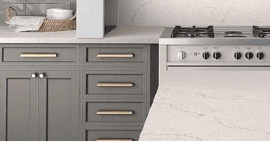 Calacatta Whisper Quartz features a creamy white base with delicate and wispy veining in shades of gray and taupe. The veins flow gracefully across the surface, creating a serene and ethereal appearance. Each slab of Calacatta Whisper Quartz exhibits unique veining patterns, ensuring a distinctive and elegant look for every installation.
