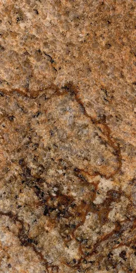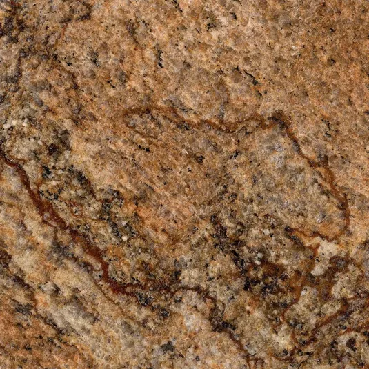 Copper Canyon granite is a dramatic rust and gold granite from Brazil with high variations and dark veins. This polished slab granite is recommended for floors, countertops, walls, and landscaping projects in both commercial and residential properties.