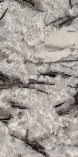 Delicatus Granite has a clean, white background with black biotite crystals, giving this stone a contemporary look.